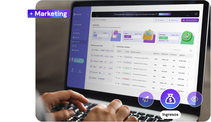 Automatiza comunicaciones basadas en datos, optimiza recursos y mide el impacto de cada acción en ventas y retención.